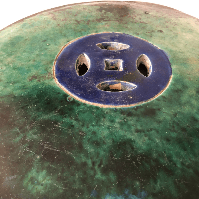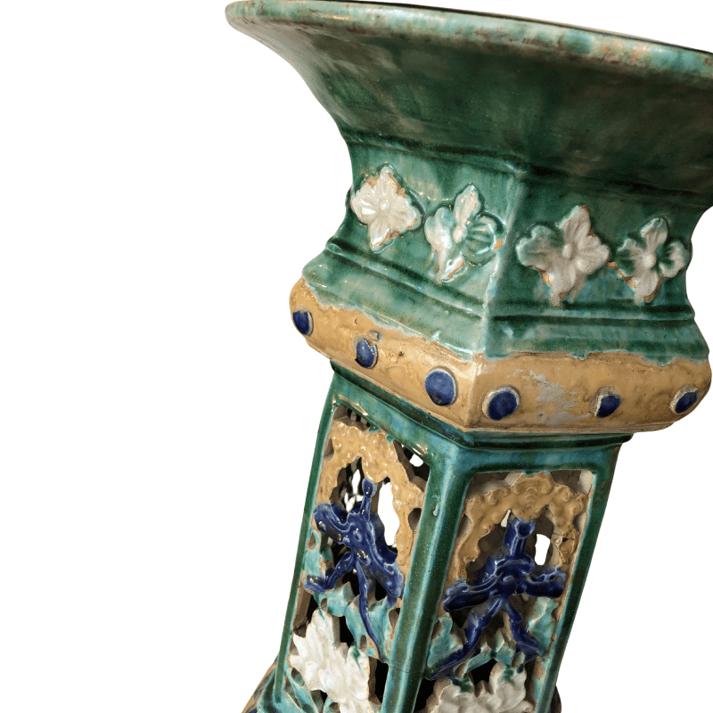Pedestal con decoración acanalada tipo fanal color verde turquesa