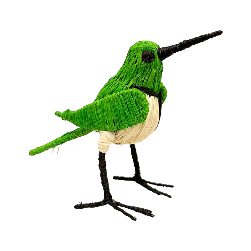 Libelula verde claro con lineas verde oscuro en el cuerpo y detalles crema en las alas y aro verde cantidad
